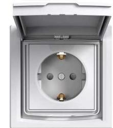 ASFORA 2P+F csatlakozóaljzat, gyermekvédelemmel, csapfedeles - IP44, kerettel, fehér